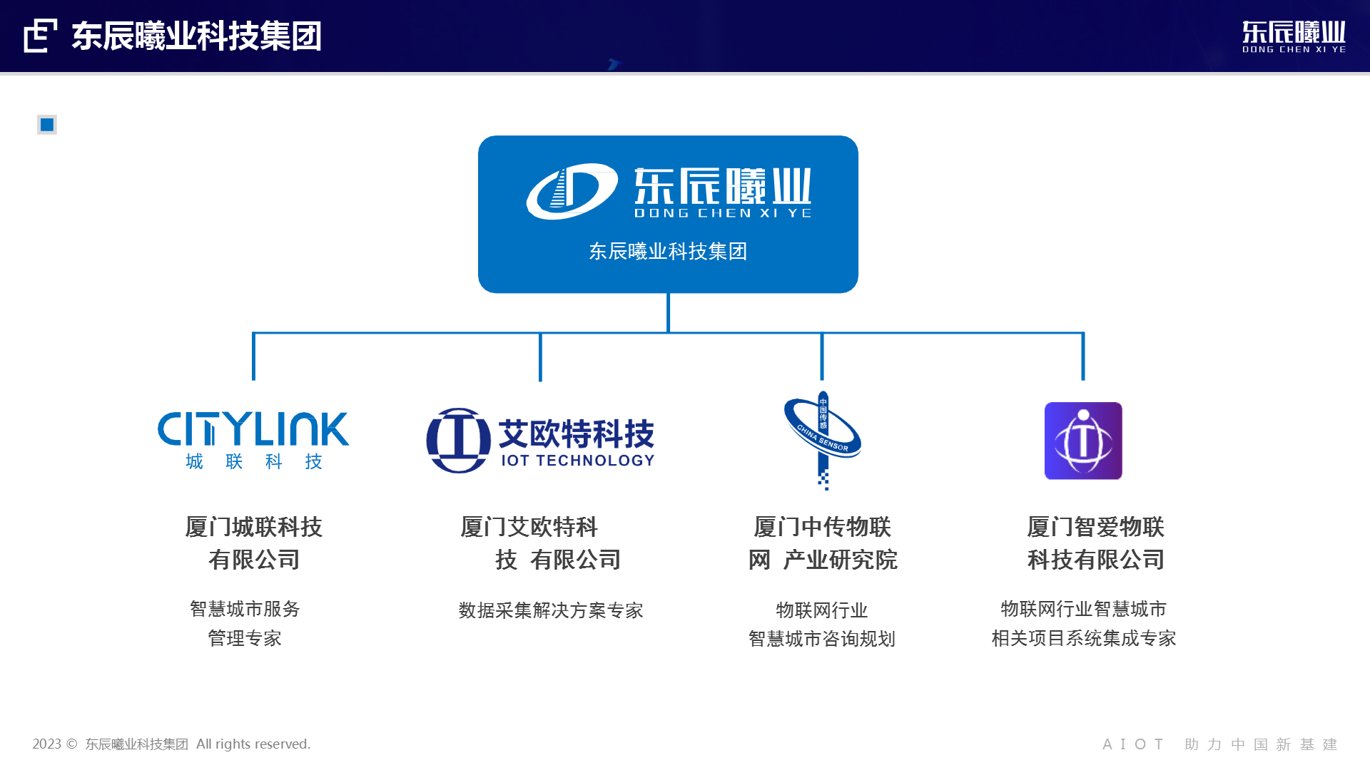 東辰曦業(yè)科技集團是一家領(lǐng)先的人工智能物聯(lián)網(wǎng)高新技術(shù)創(chuàng )新型集團公司。公司致力于物聯(lián)網(wǎng)行業(yè)信息技術(shù)的研發(fā)及產(chǎn)業(yè)化應用,結合人工智能、大數據及邊緣計算等技術(shù)為企事業(yè)單位和政府部門(mén)提供物聯(lián)網(wǎng) 行業(yè)整體解決方案,助力中國新基建。集團旗下?lián)碛袕B門(mén)城聯(lián)科技、廈門(mén)艾歐特科技、廈門(mén)智愛(ài)物聯(lián)科技三家國家高新技術(shù)企業(yè)的子公司及廈門(mén)中傳物聯(lián)網(wǎng)產(chǎn)業(yè)研究院。業(yè)務(wù)涵蓋智慧城市服務(wù)管理、智慧高速服務(wù)區、智慧電力、智慧煙草、智慧醫療等產(chǎn)業(yè) 組群并提供實(shí)施應用,并通過(guò)產(chǎn)業(yè)研究院的孵化平臺結合自身技術(shù)和資源優(yōu)勢不斷擴充不同領(lǐng)域及場(chǎng)景的業(yè)務(wù)板塊。
